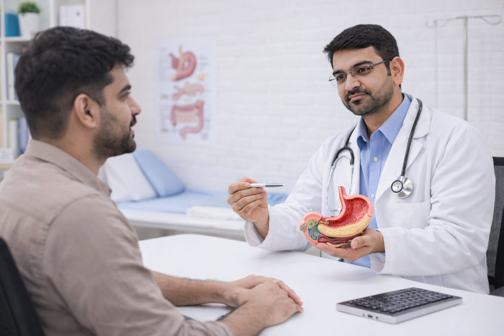 Comprehensive stomach care includes management of acidity, gastritis, ulcers, and reflux disorders. Dr. Thakur Prashant Singh provides advanced diagnosis and targeted therapy for chronic gastric conditions, ensuring symptom relief, prevention of recurrence, and long-term digestive comfort for patients seeking trusted gastroenterology care in Gorakhpur.